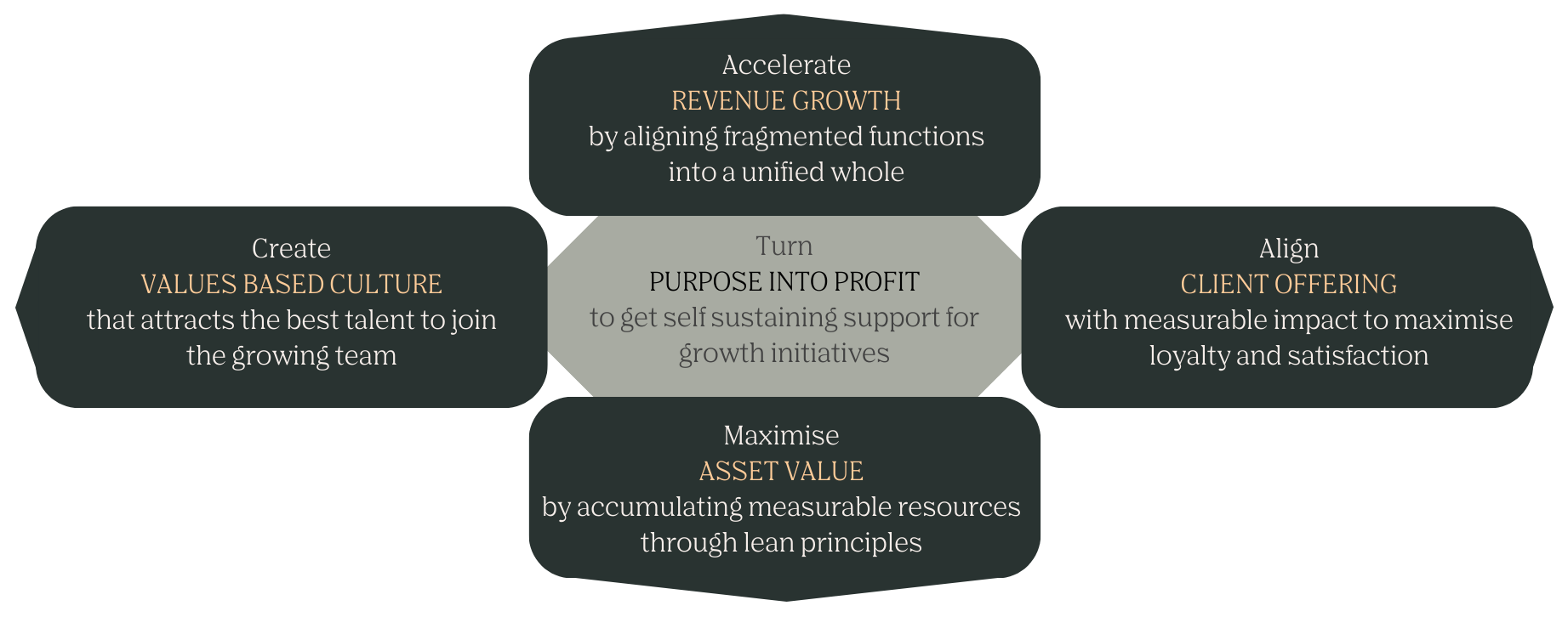 This direction is measured by revenue growth aligned with the long-term vision. A strong upward trajectory shows in bold goals, increasing turnover and strategic confidence. Tracking sales performance and revenue progression gives insight into this dimension. If overemphasised, it may create fast results without the depth needed to sustain them.